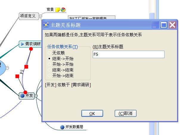 MindVisualizer扩充了思维导图的重要元素:“主题关系”连线,使得你可以方便、定义各个任务之间的前置任务及其依赖关系(F结束-开始、开始-开始等等)。